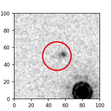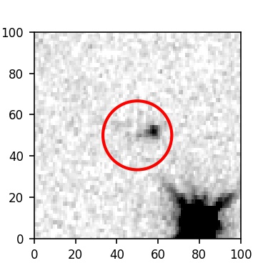 The red circle in the various panels is 1" in radius. The images are 6"x6".
