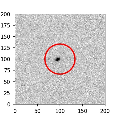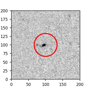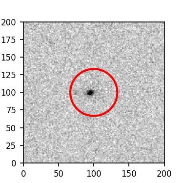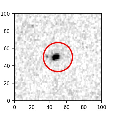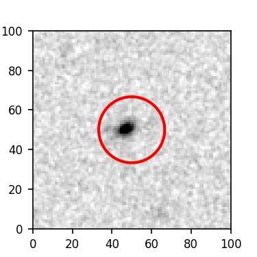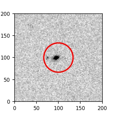 The red circle in the various panels is 1" in radius. The images are 6"x6".