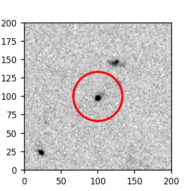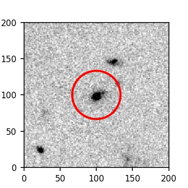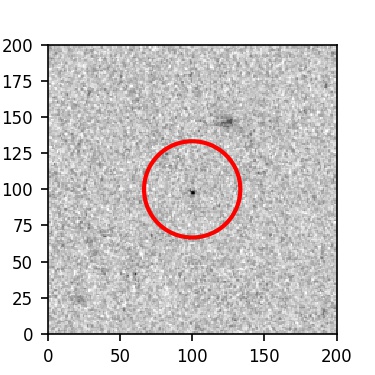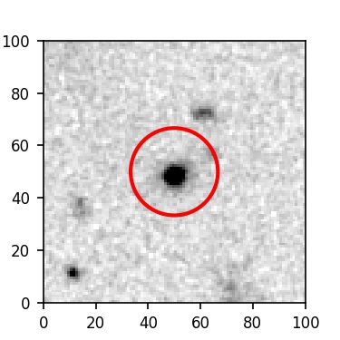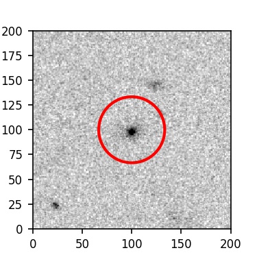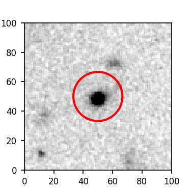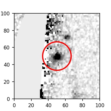 The red circle in the various panels is 1" in radius. The images are 6"x6".