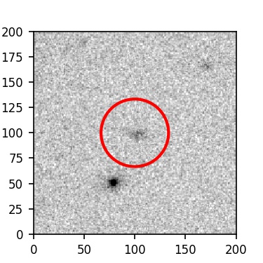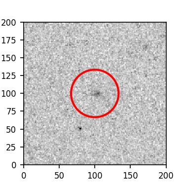The red circle in the various panels is 1" in radius. The images are 6"x6".
