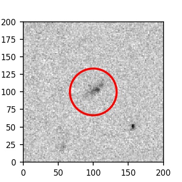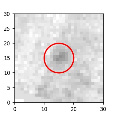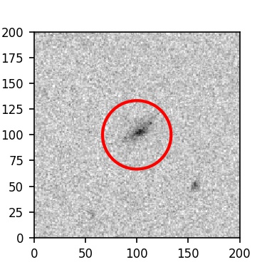 The red circle in the various panels is 1" in radius. The images are 6"x6".