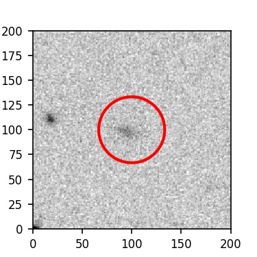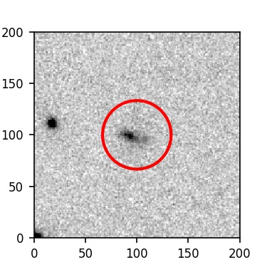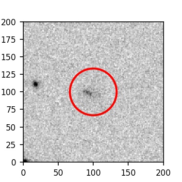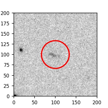 The red circle in the various panels is 1" in radius. The images are 6"x6".