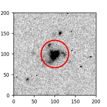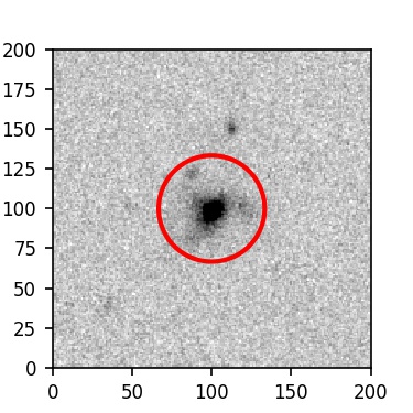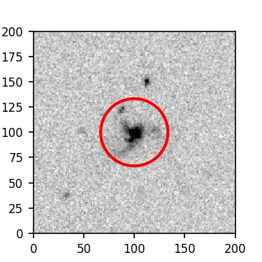 The red circle in the various panels is 1" in radius. The images are 6"x6".
