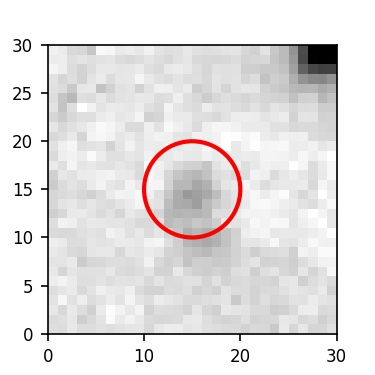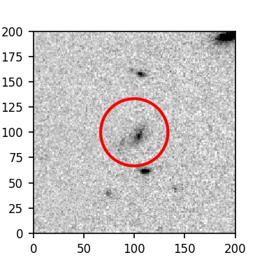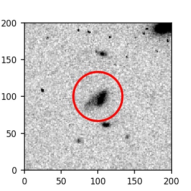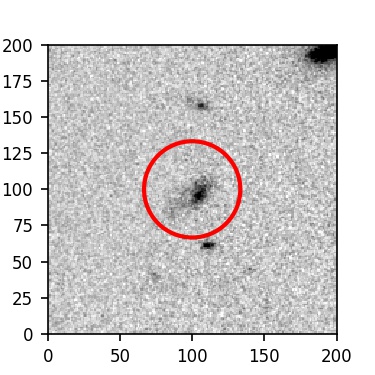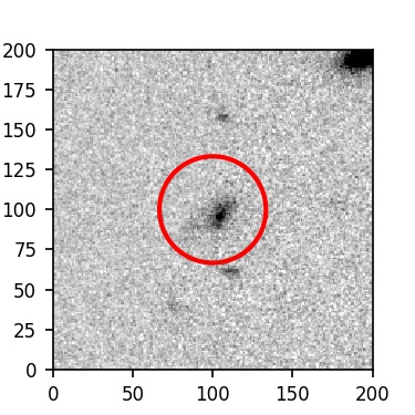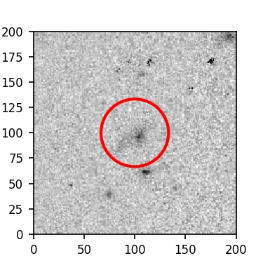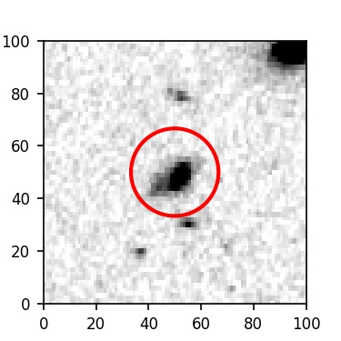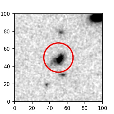 The red circle in the various panels is 1" in radius. The images are 6"x6".