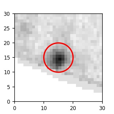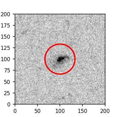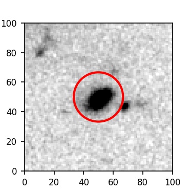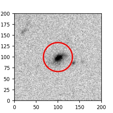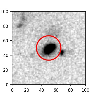 The red circle in the various panels is 1" in radius. The images are 6"x6".