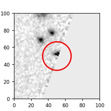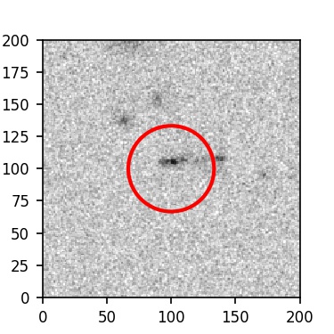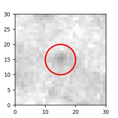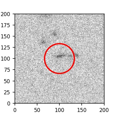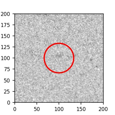 The red circle in the various panels is 1" in radius. The images are 6"x6".