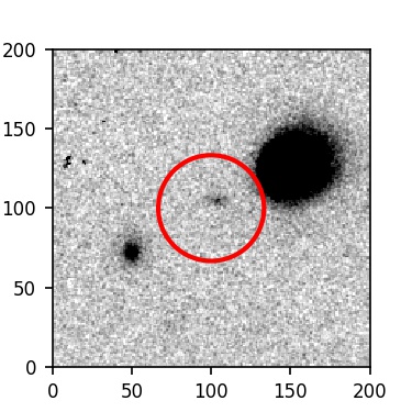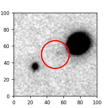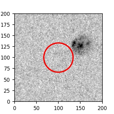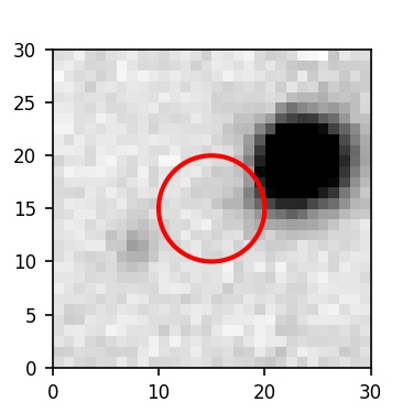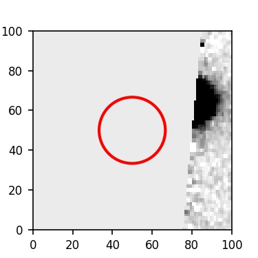 The red circle in the various panels is 1" in radius. The images are 6"x6".