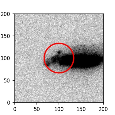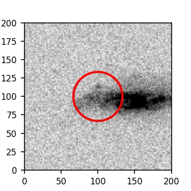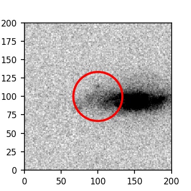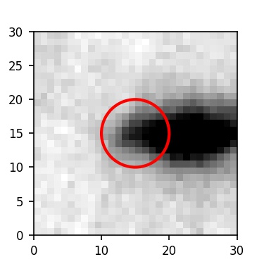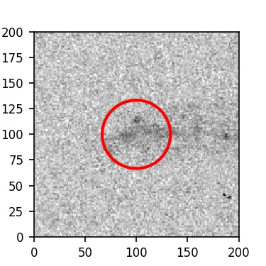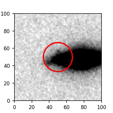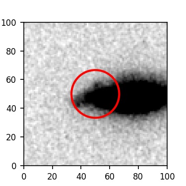 The red circle in the various panels is 1" in radius. The images are 6"x6".