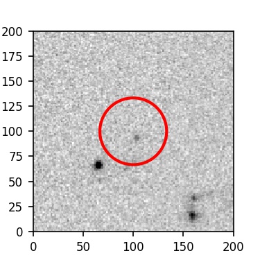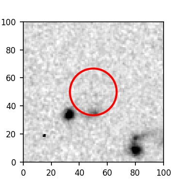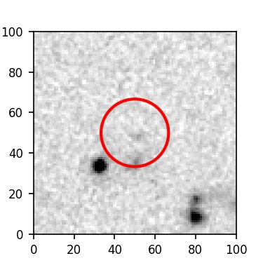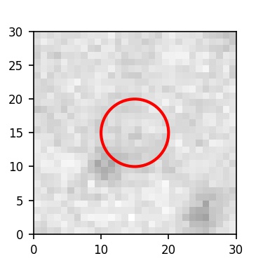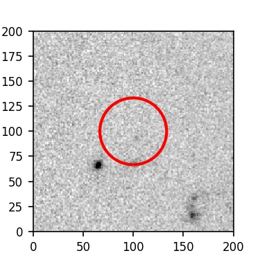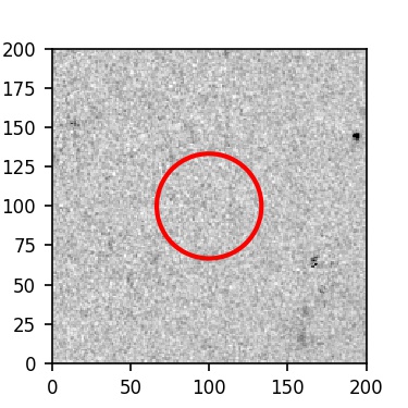 The red circle in the various panels is 1" in radius. The images are 6"x6".