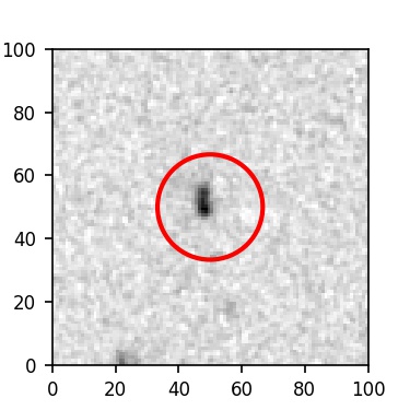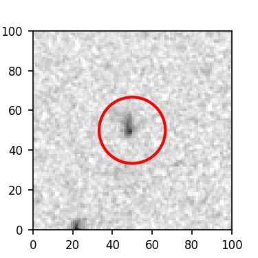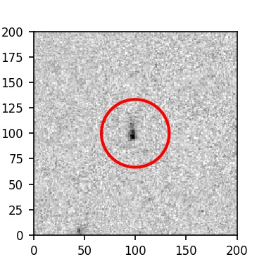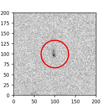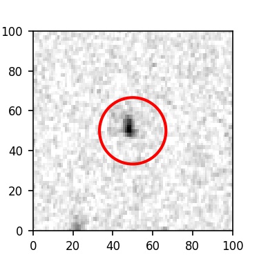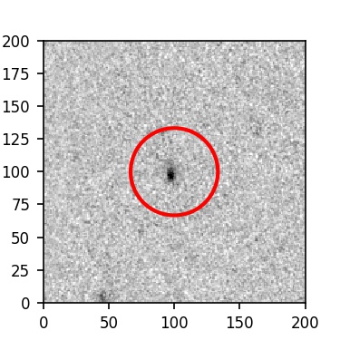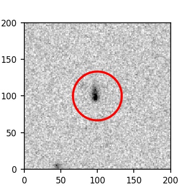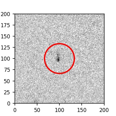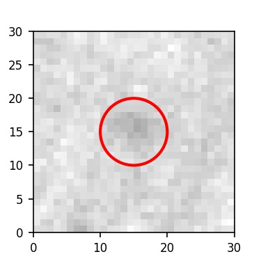 The red circle in the various panels is 1" in radius. The images are 6"x6".