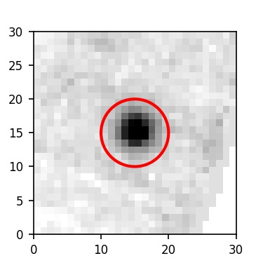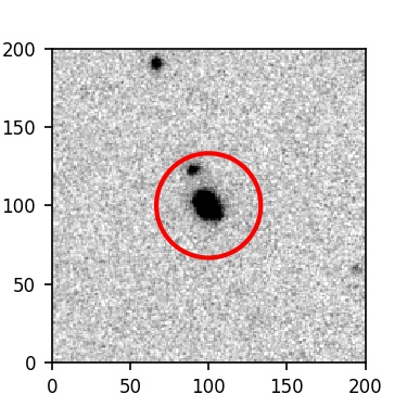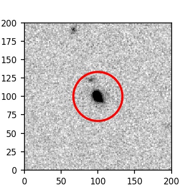 The red circle in the various panels is 1" in radius. The images are 6"x6".