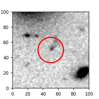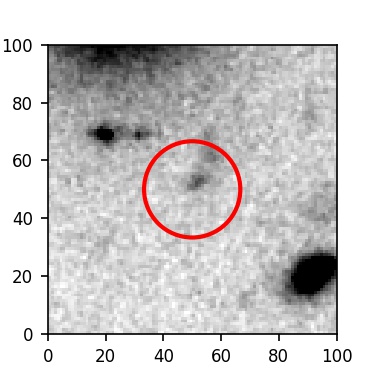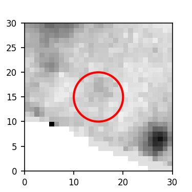 The red circle in the various panels is 1" in radius. The images are 6"x6".