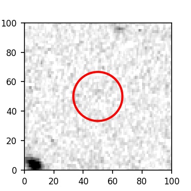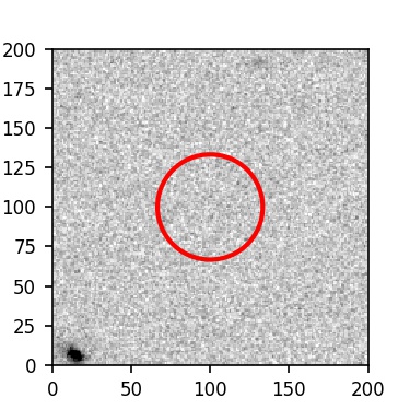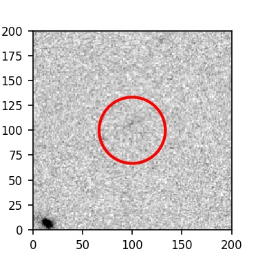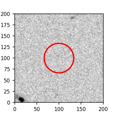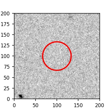 The red circle in the various panels is 1" in radius. The images are 6"x6".