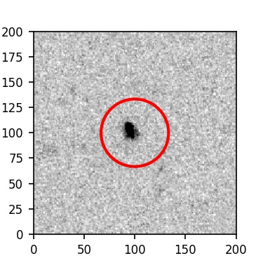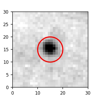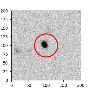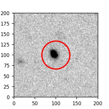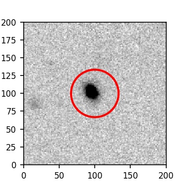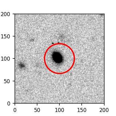 The red circle in the various panels is 1" in radius. The images are 6"x6".