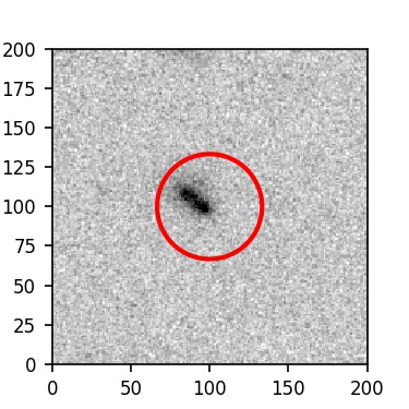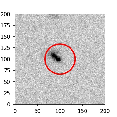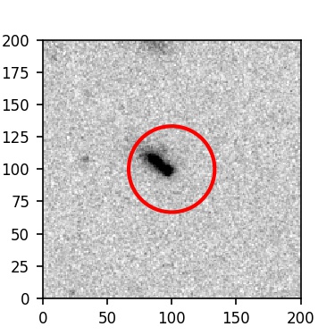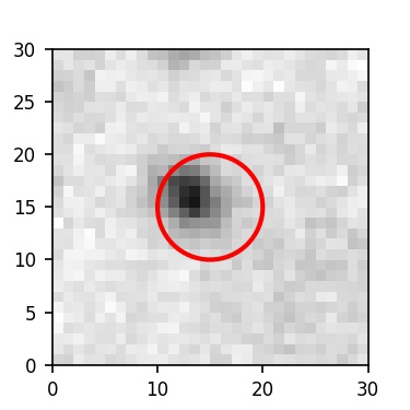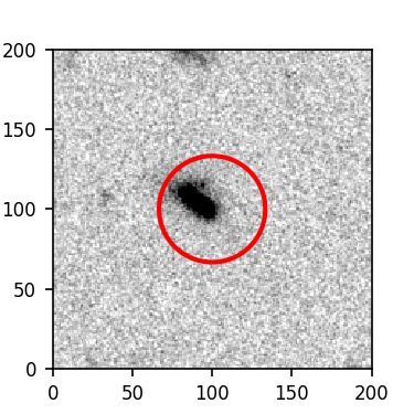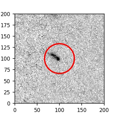 The red circle in the various panels is 1" in radius. The images are 6"x6".