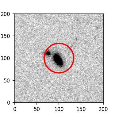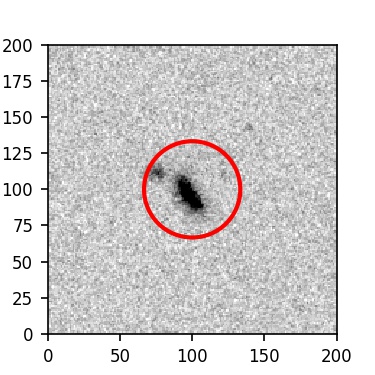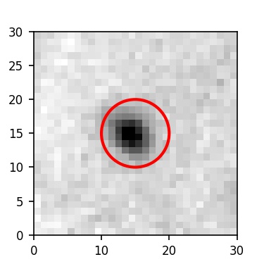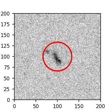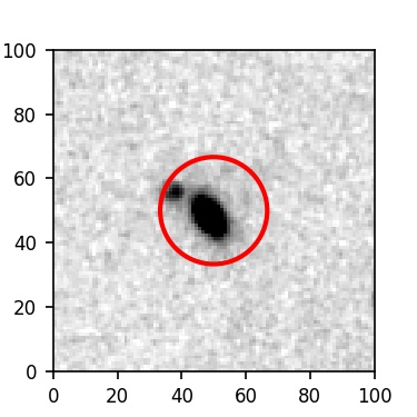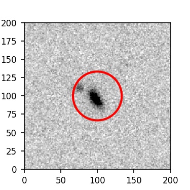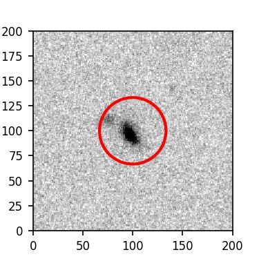 The red circle in the various panels is 1" in radius. The images are 6"x6".