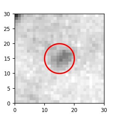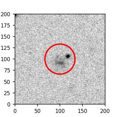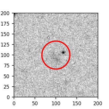 The red circle in the various panels is 1" in radius. The images are 6"x6".