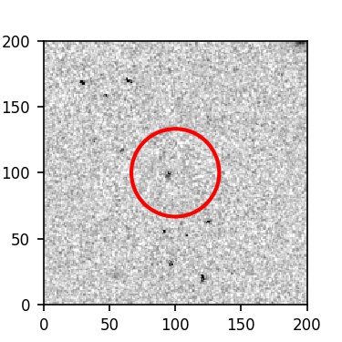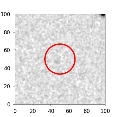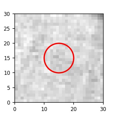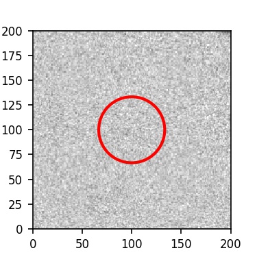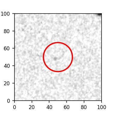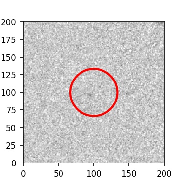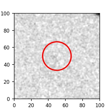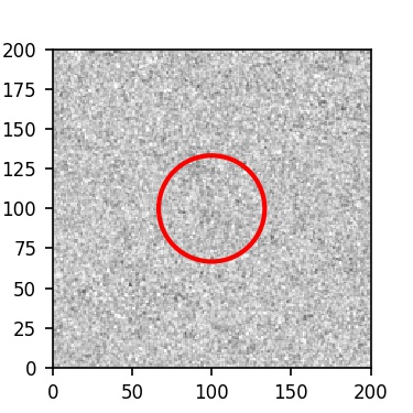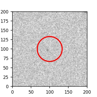The red circle in the various panels is 1" in radius. The images are 6"x6".