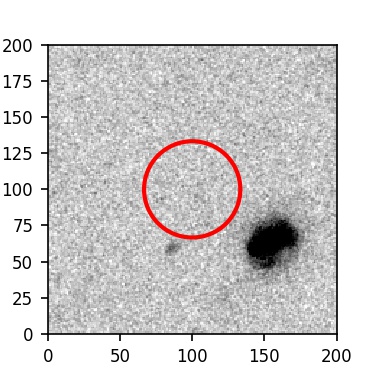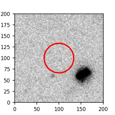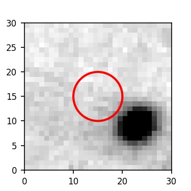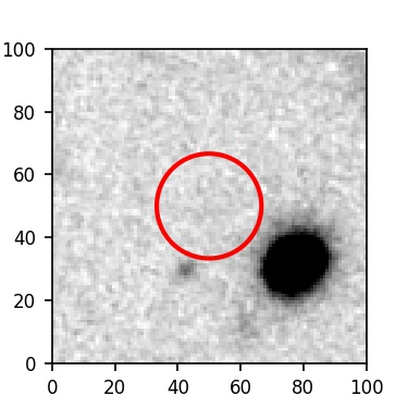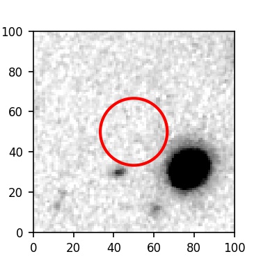 The red circle in the various panels is 1" in radius. The images are 6"x6".