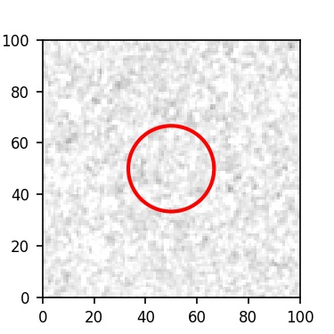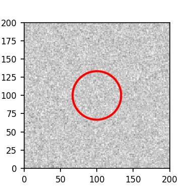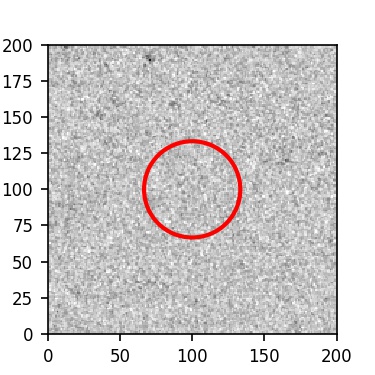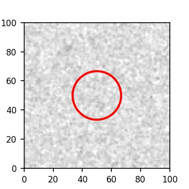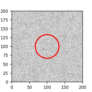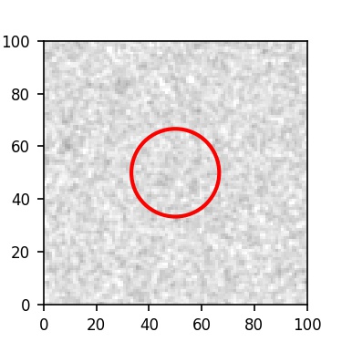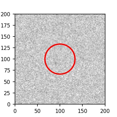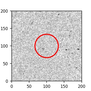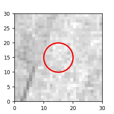 The red circle in the various panels is 1" in radius. The images are 6"x6".