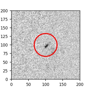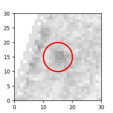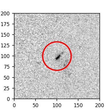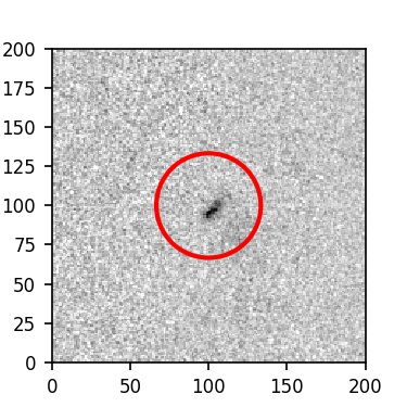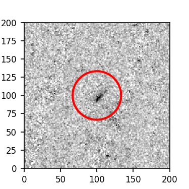 The red circle in the various panels is 1" in radius. The images are 6"x6".