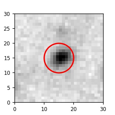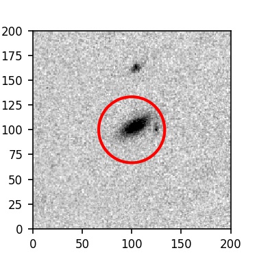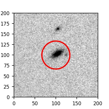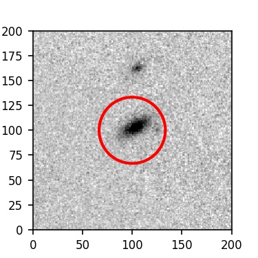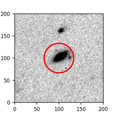 The red circle in the various panels is 1" in radius. The images are 6"x6".
