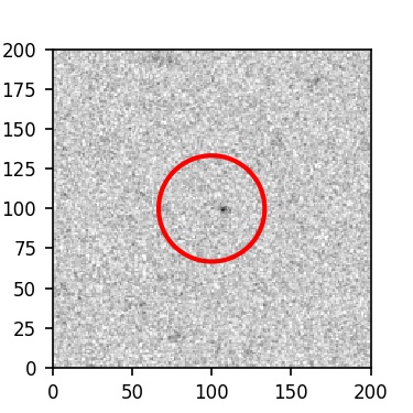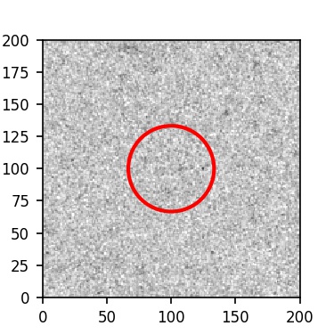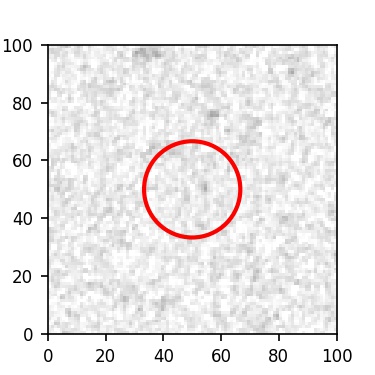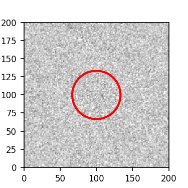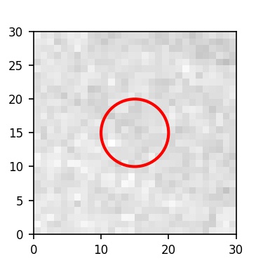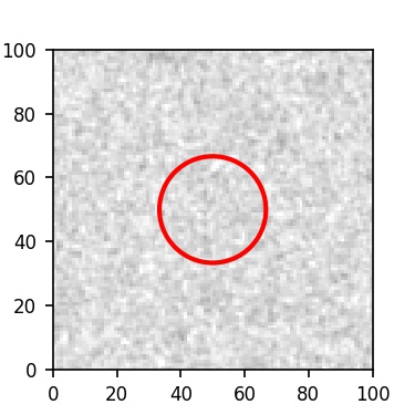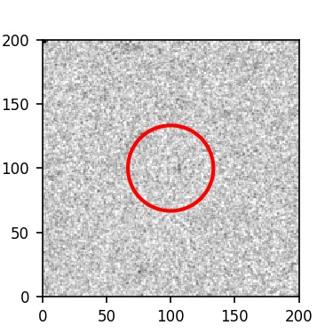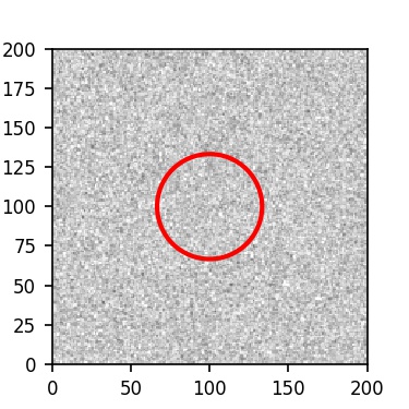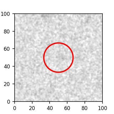 The red circle in the various panels is 1" in radius. The images are 6"x6".