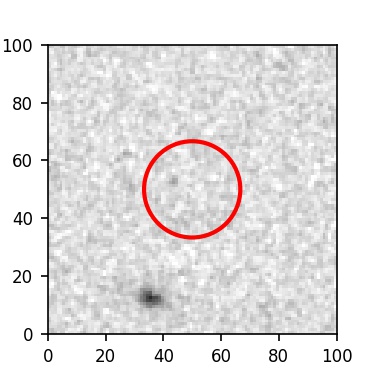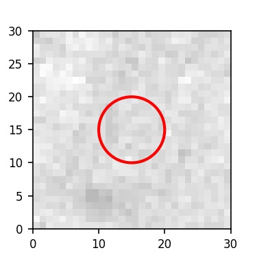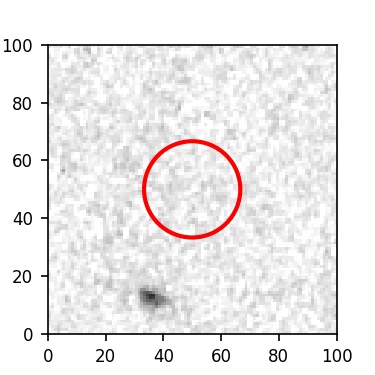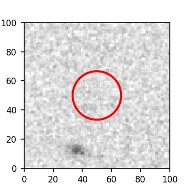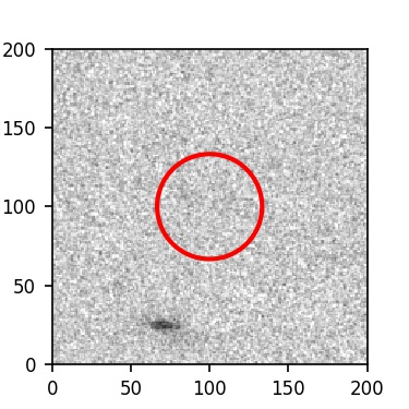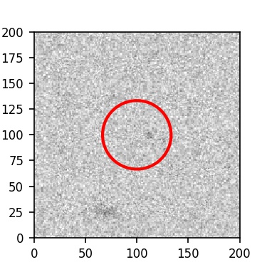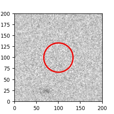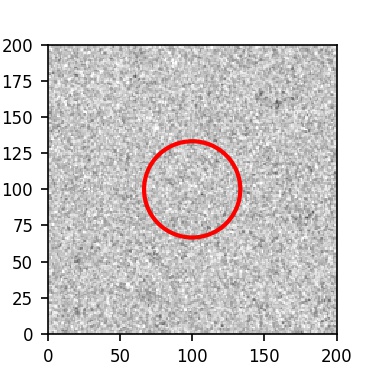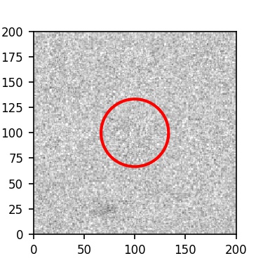 The red circle in the various panels is 1" in radius. The images are 6"x6".