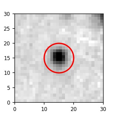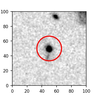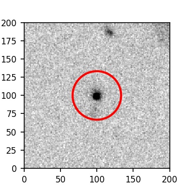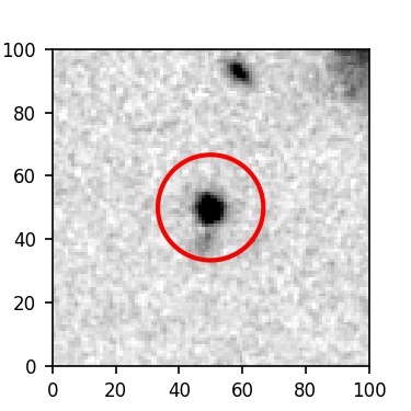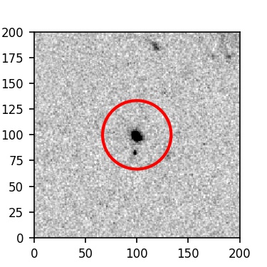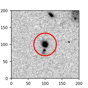 The red circle in the various panels is 1" in radius. The images are 6"x6".
