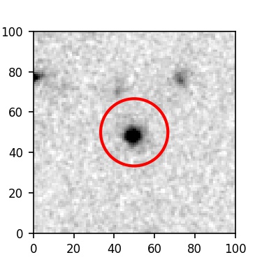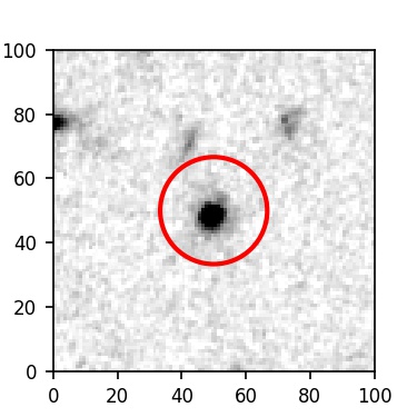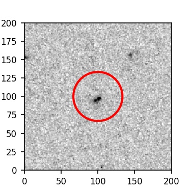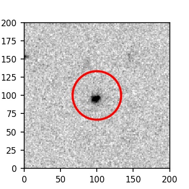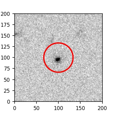 The red circle in the various panels is 1" in radius. The images are 6"x6".