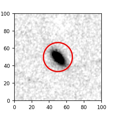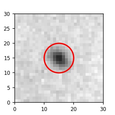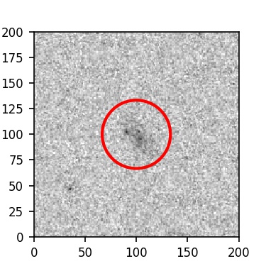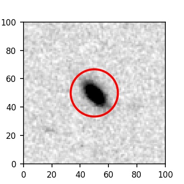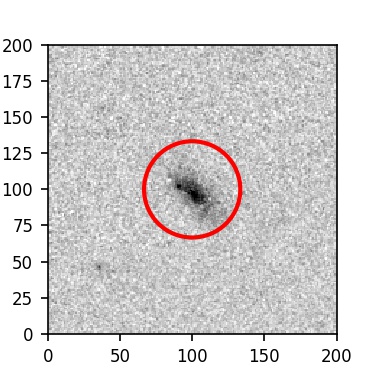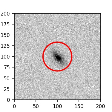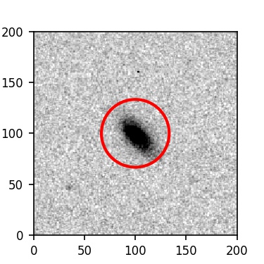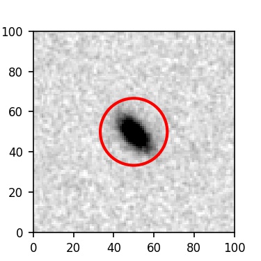 The red circle in the various panels is 1" in radius. The images are 6"x6".