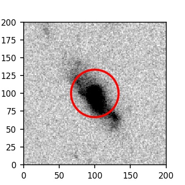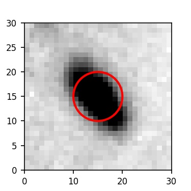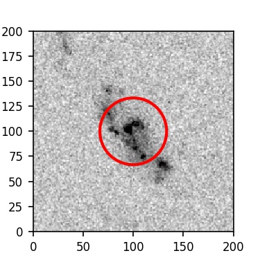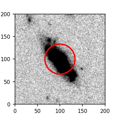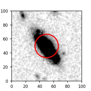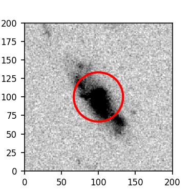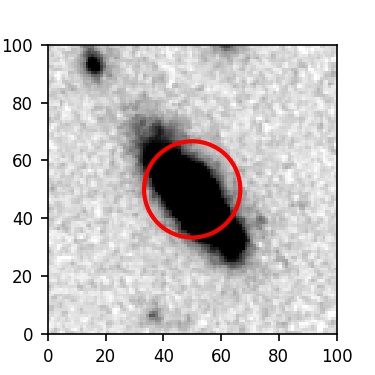 The red circle in the various panels is 1" in radius. The images are 6"x6".