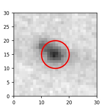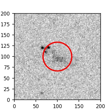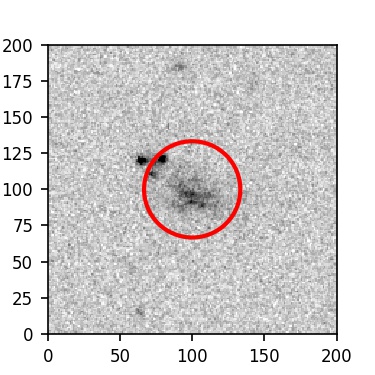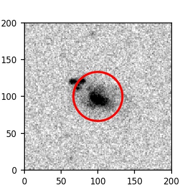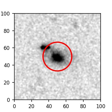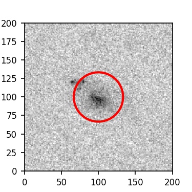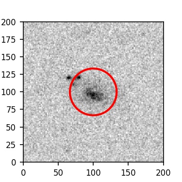The red circle in the various panels is 1" in radius. The images are 6"x6".