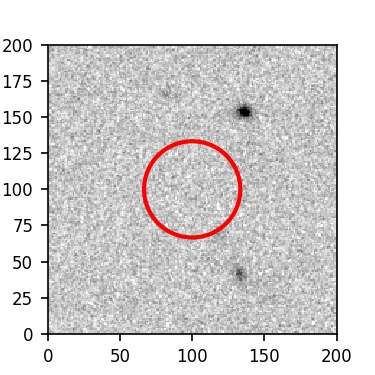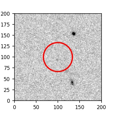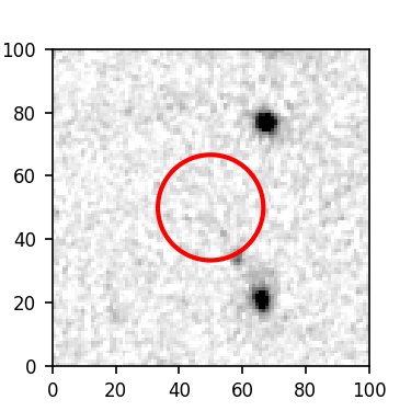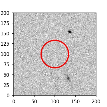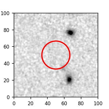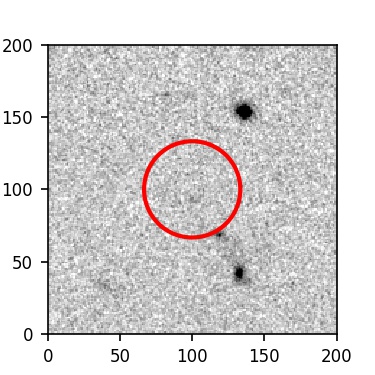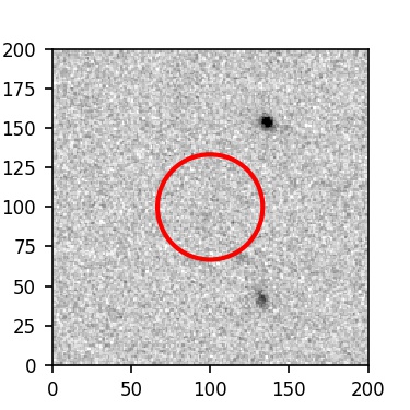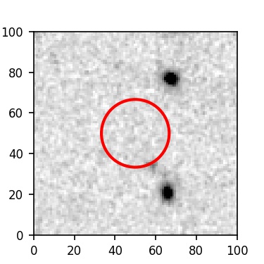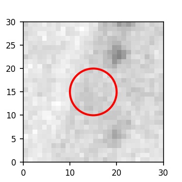 The red circle in the various panels is 1" in radius. The images are 6"x6".