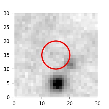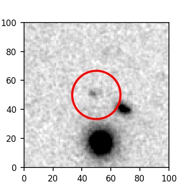 The red circle in the various panels is 1" in radius. The images are 6"x6".