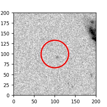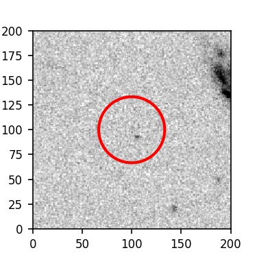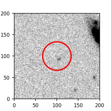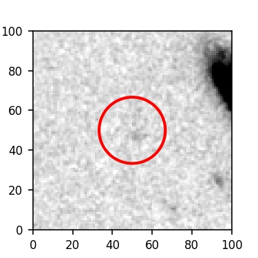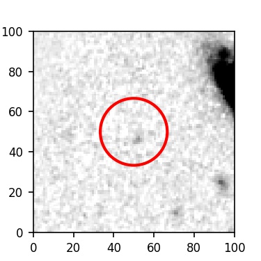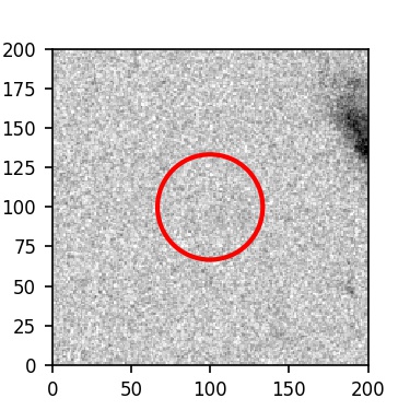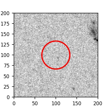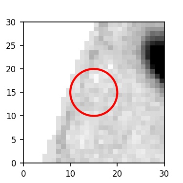 The red circle in the various panels is 1" in radius. The images are 6"x6".
