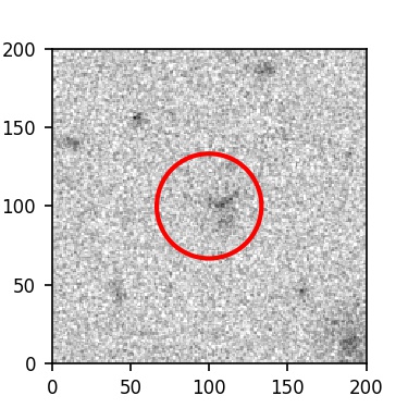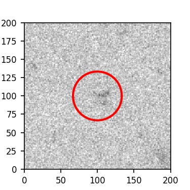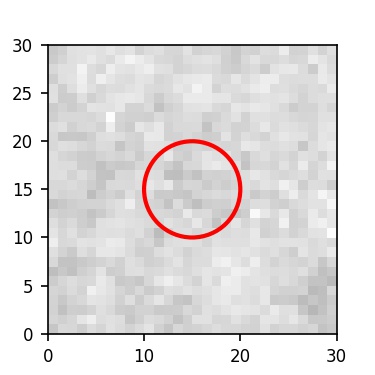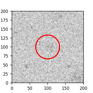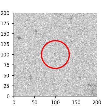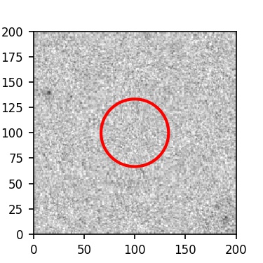 The red circle in the various panels is 1" in radius. The images are 6"x6".