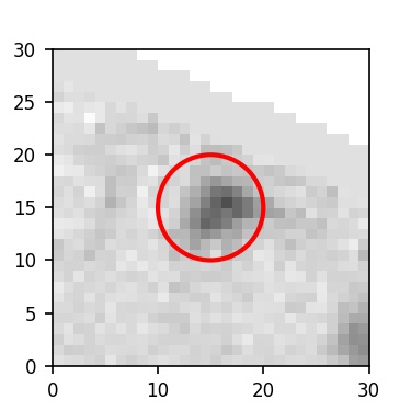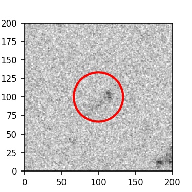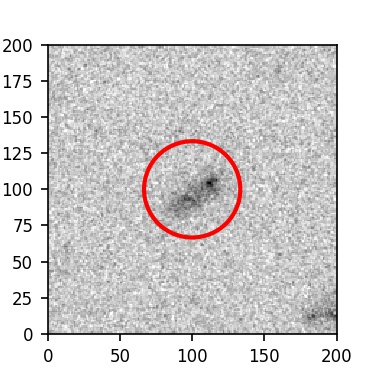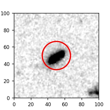 The red circle in the various panels is 1" in radius. The images are 6"x6".