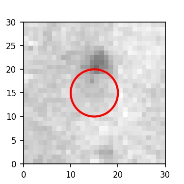 The red circle in the various panels is 1" in radius. The images are 6"x6".