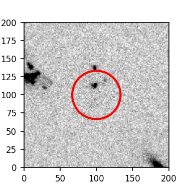 The red circle in the various panels is 1" in radius. The images are 6"x6".