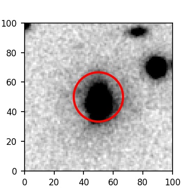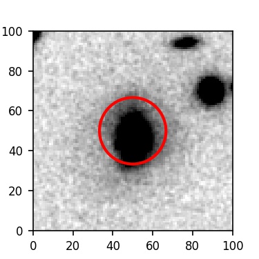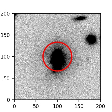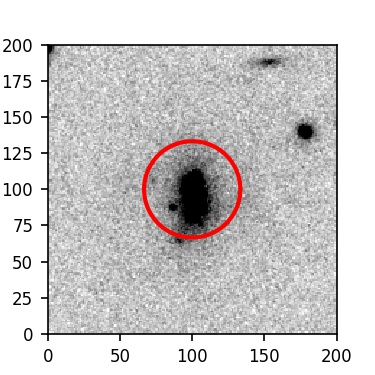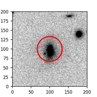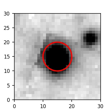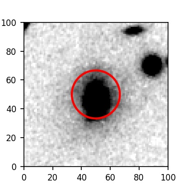 The red circle in the various panels is 1" in radius. The images are 6"x6".