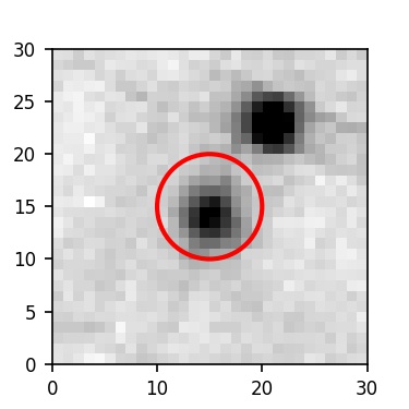 The red circle in the various panels is 1" in radius. The images are 6"x6".
