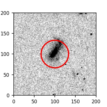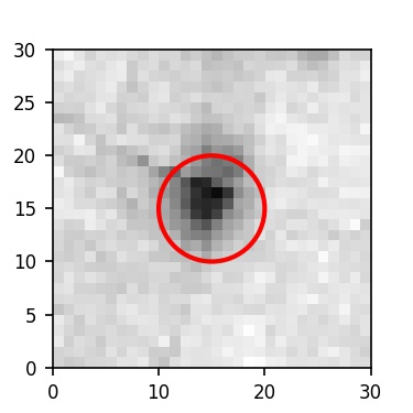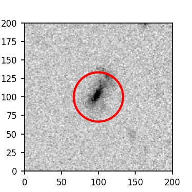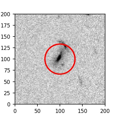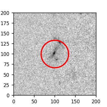 The red circle in the various panels is 1" in radius. The images are 6"x6".