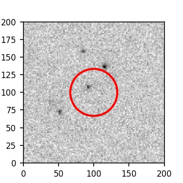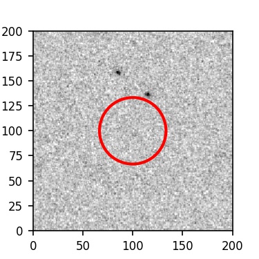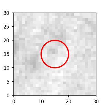 The red circle in the various panels is 1" in radius. The images are 6"x6".