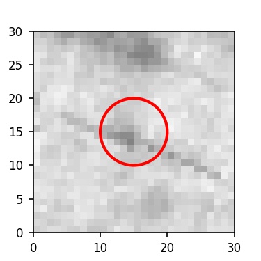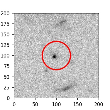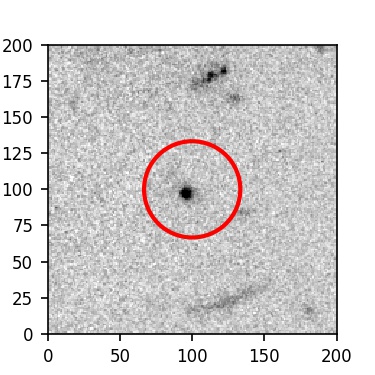 The red circle in the various panels is 1" in radius. The images are 6"x6".