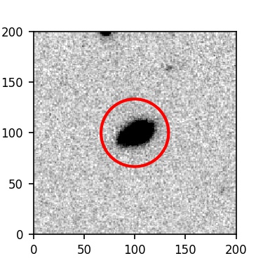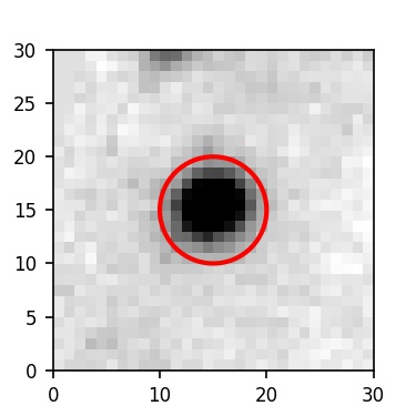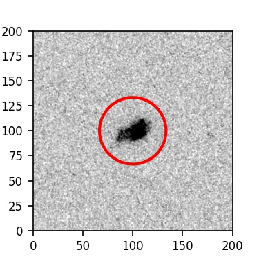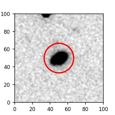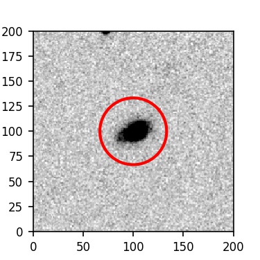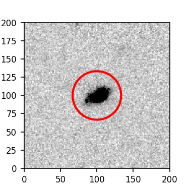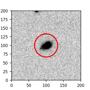 The red circle in the various panels is 1" in radius. The images are 6"x6".