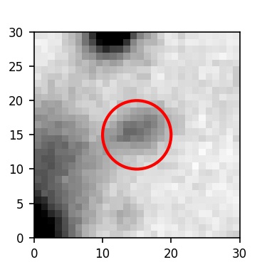 The red circle in the various panels is 1" in radius. The images are 6"x6".