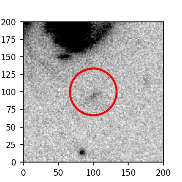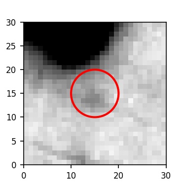 The red circle in the various panels is 1" in radius. The images are 6"x6".