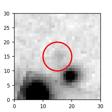 The red circle in the various panels is 1" in radius. The images are 6"x6".