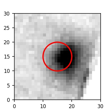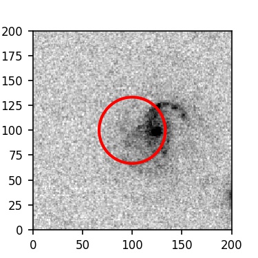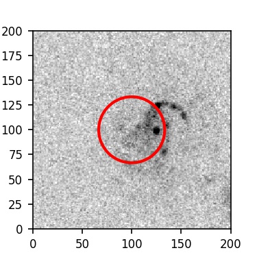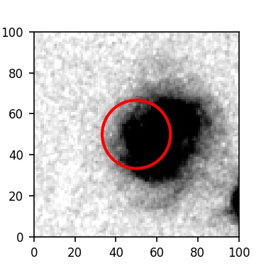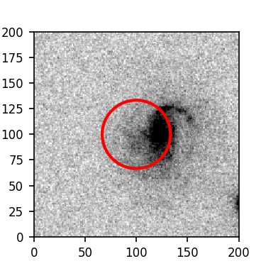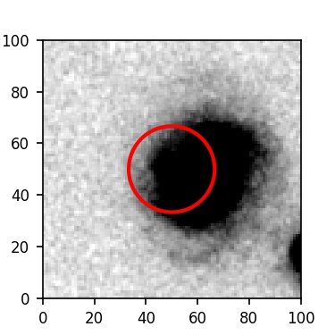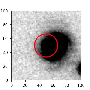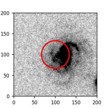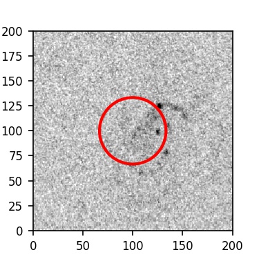 The red circle in the various panels is 1" in radius. The images are 6"x6".